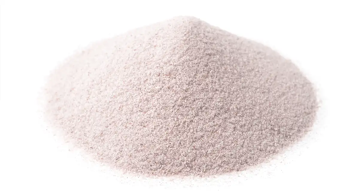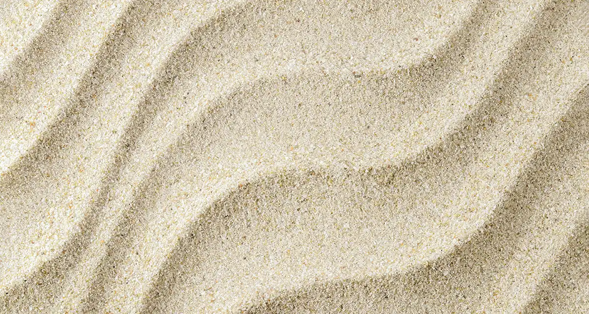 純度90%以上の二酸化ケイ素(シリカ)からなる砂で、他の不純物が少ないため均一な粒子で、白く美しい見た目が特徴的です。