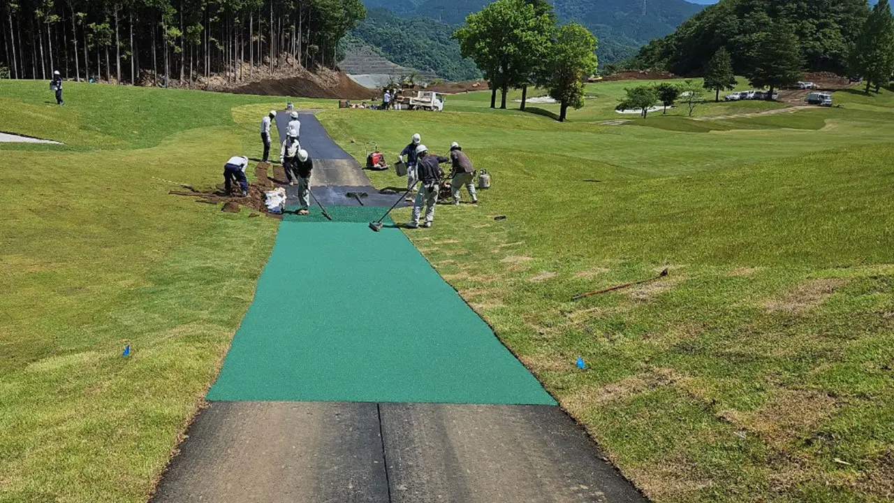 ゴルフ場のカート道新設・改造は、安全性の向上とコースの効率的な運用を目的に行われます。路面材にはコンクリートやアスファルト、透水性舗装などが用いられ、排水性や耐久性が重視されます。勾配設計や幅員の確保により走行性を改善し、雨天時のぬかるみや芝生へのダメージも軽減させるなど快適なプレー環境の維持に重要な役割を果たします。